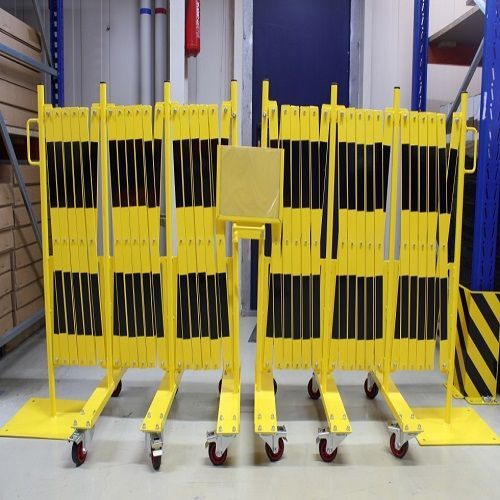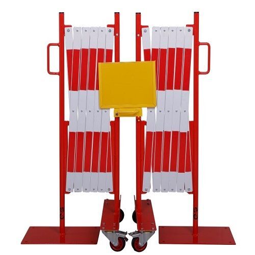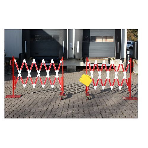 Deze hekken hebben aan 1 kant een voetplaat van 400 x 300 x 6 mm en aan het andere uiteinde een 500 mm balk met wielen.