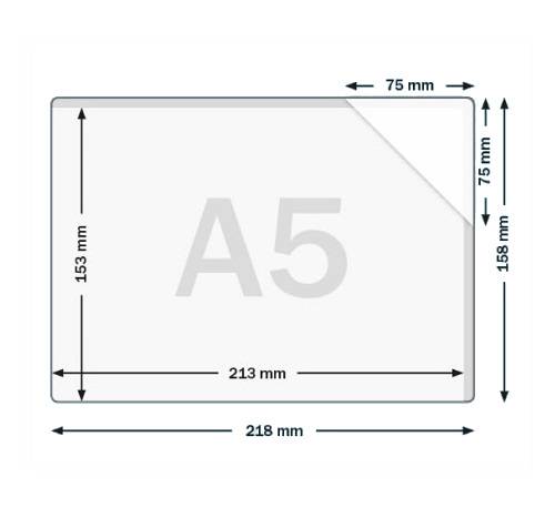 | A5 buitenmaat 218 x 258 / binnenmaat 213 x 153 mm |