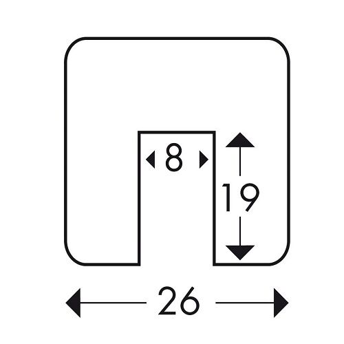 | Afmeting | 26 mm breed. Groef 19 mm diep en 8 mm breed |