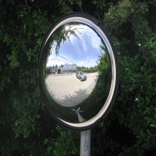 Acryl verkeersspiegel met 180° kijkhoek zonder rood/witte rand.