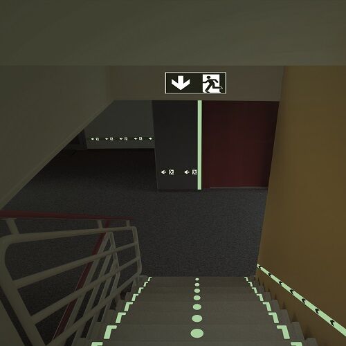 Deze hoeken worden doorgaans toegepast op traptreden (aan de zijkanten) voor vluchtweg markering bij eventuele stroomuitval of sterke rookontwikkeling.
